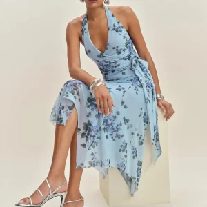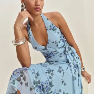 The model is wearing a size 0 and is 5’10”, 23″ waist, 34″ hips, 32″ bust.