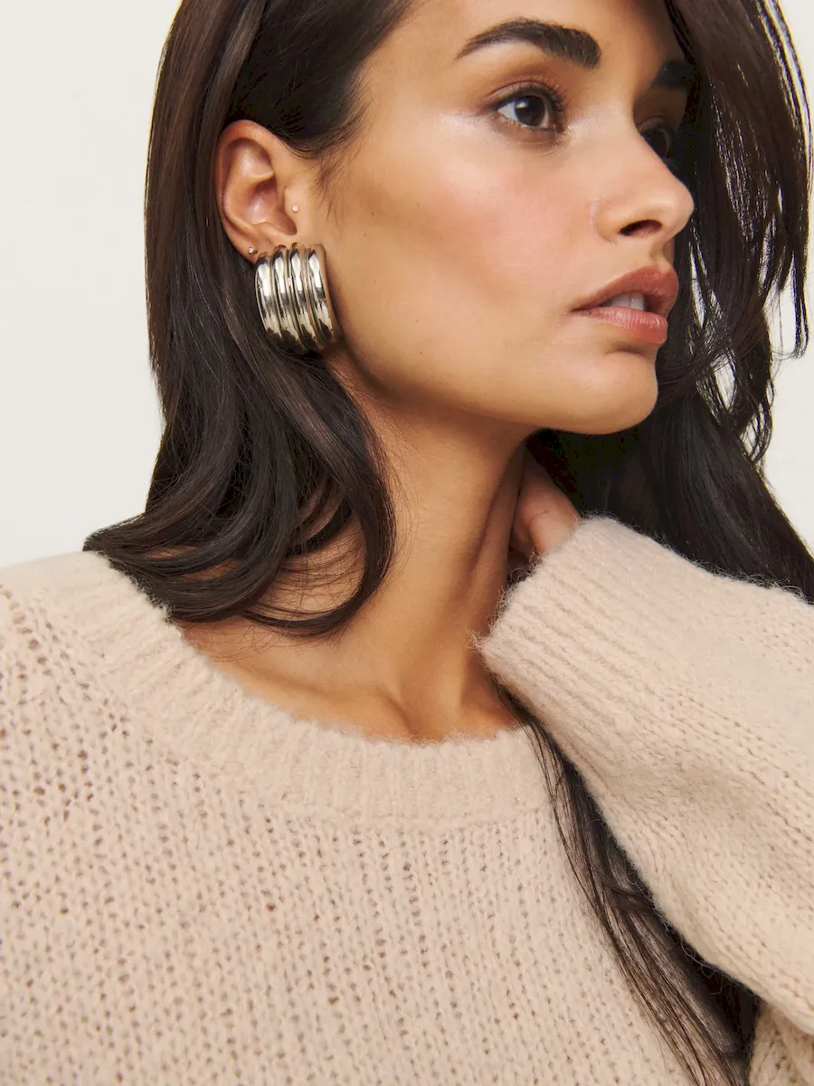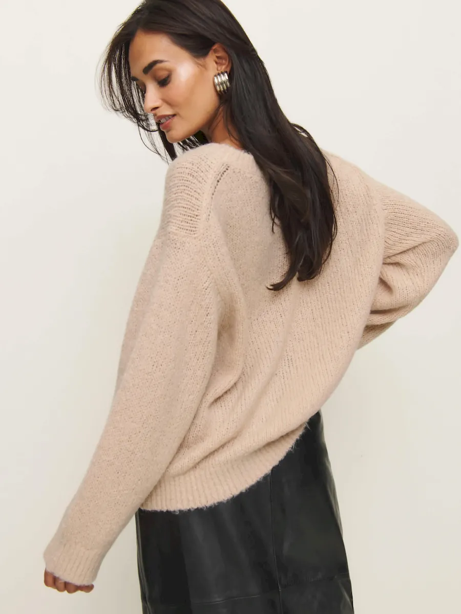 This is a soft, slubby alpaca sweater yarn spun in Italy, made from 56% Baby Suri Alpaca, 32% RWS Merino Wool, 8% GRS Recycled Nylon, 4% Nylon.