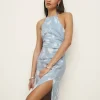 The model is wearing a size 0 and is 5’8″, 23″ waist, 35.5″ hips, 30″ bust.