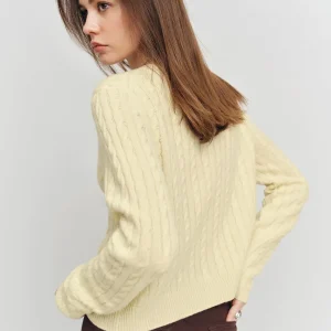 This is a fine-gauge recycled cashmere blend sweater knit – 95% Recycled Cashmere, 5% Cashmere.