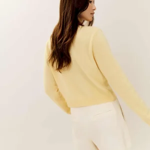 This is a fine-gauge recycled cashmere blend sweater knit – 95% Recycled Cashmere, 5% Cashmere. Hand wash + dry flat. More onfabric & care.
