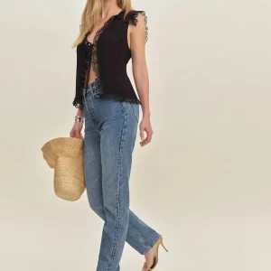 The model is wearing a size 0 and is 5’7″, 23″ waist, 34″ hips, 32″ bust.