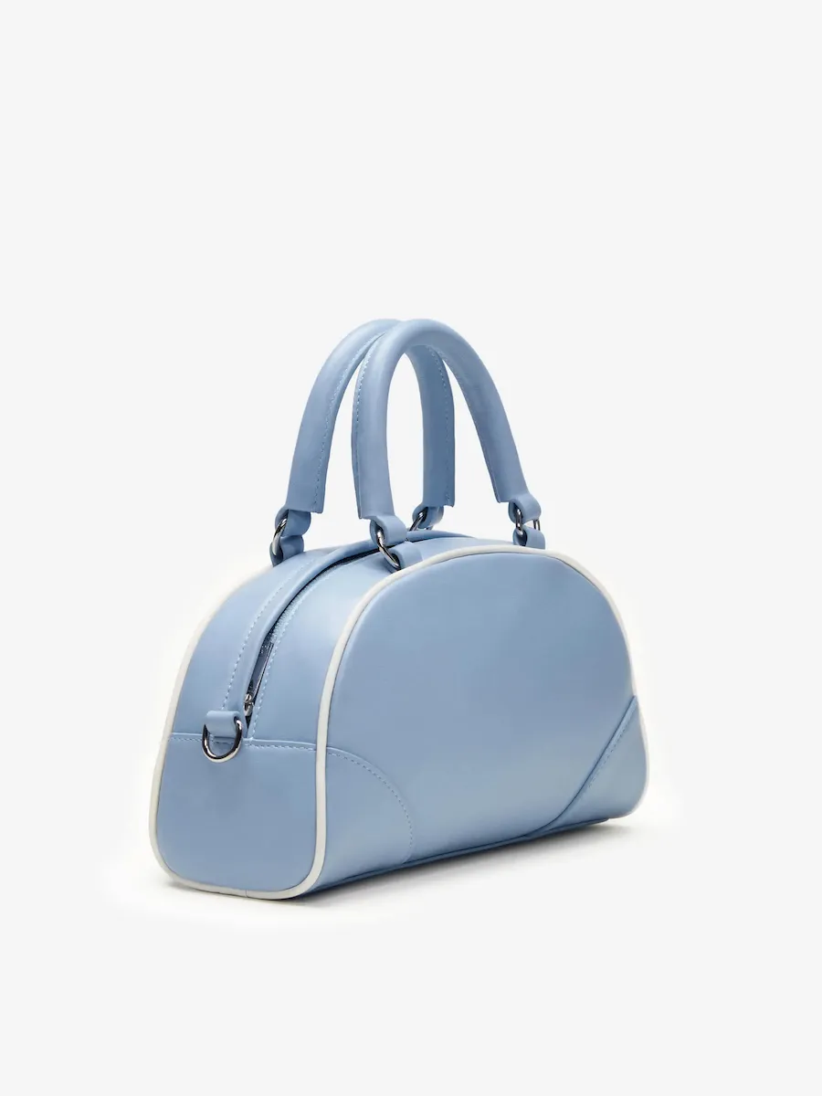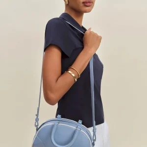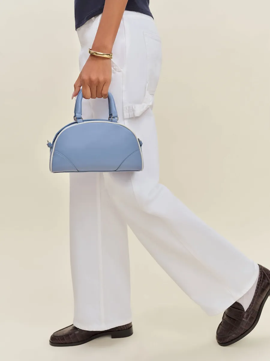 a crossbody bag with a top handle and removable strap..