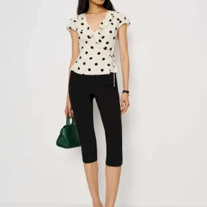 The model is wearing a size 0 and is 5’10”, 24.5″ waist, 34.5″ hips, 31″ bust.
