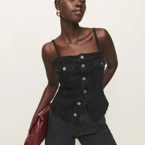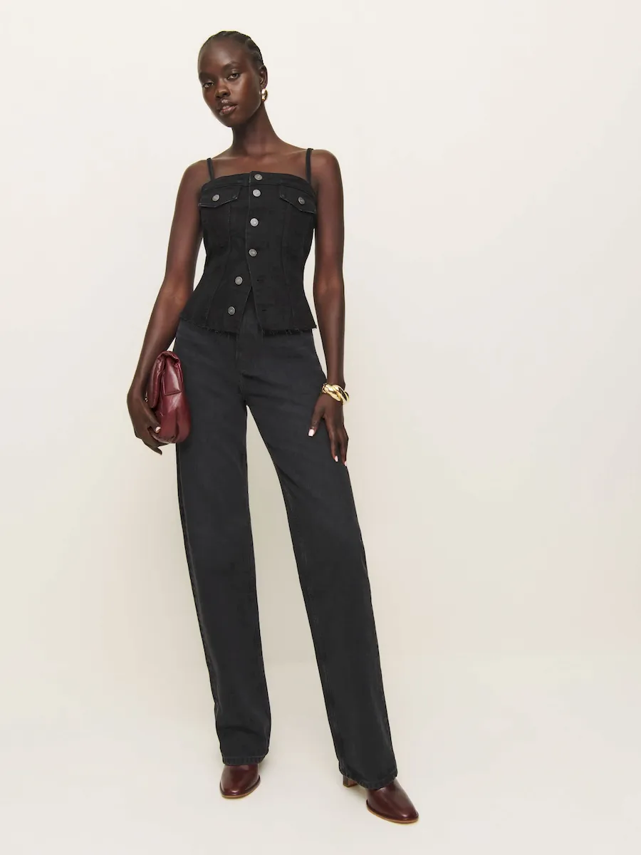 The model is wearing a size 0 and has a 25″ waist, 35″ hips.