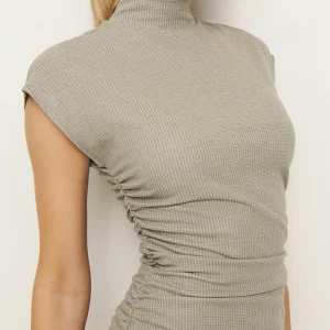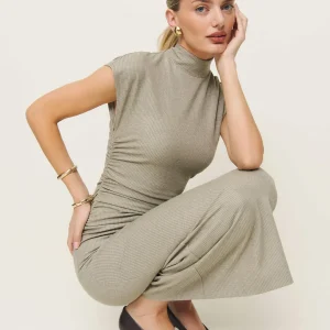 The model is wearing a size XS and is 5’9″, 24″ waist, 34.5″ hips, 33″ bust.