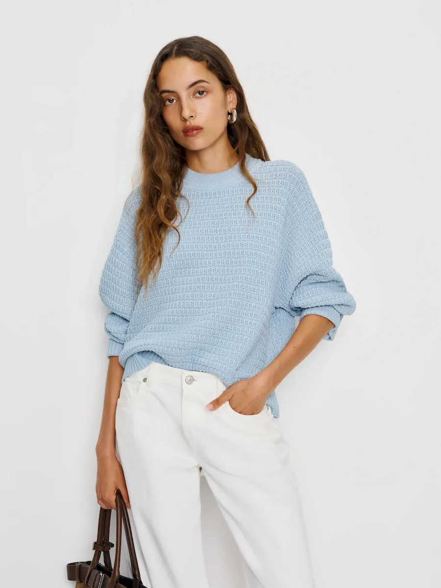 This is a medium weight cotton sweater knit – 100% Organically Grown Cotton. Hand wash + dry flat. More onfabric & care.