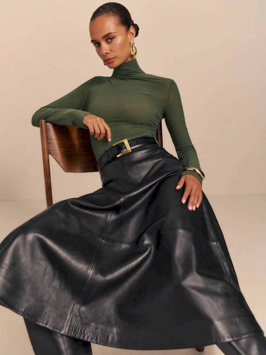 The model is wearing a size XS and is 5’9″, 24″ waist, 32.5″ hips, 31″ bust.