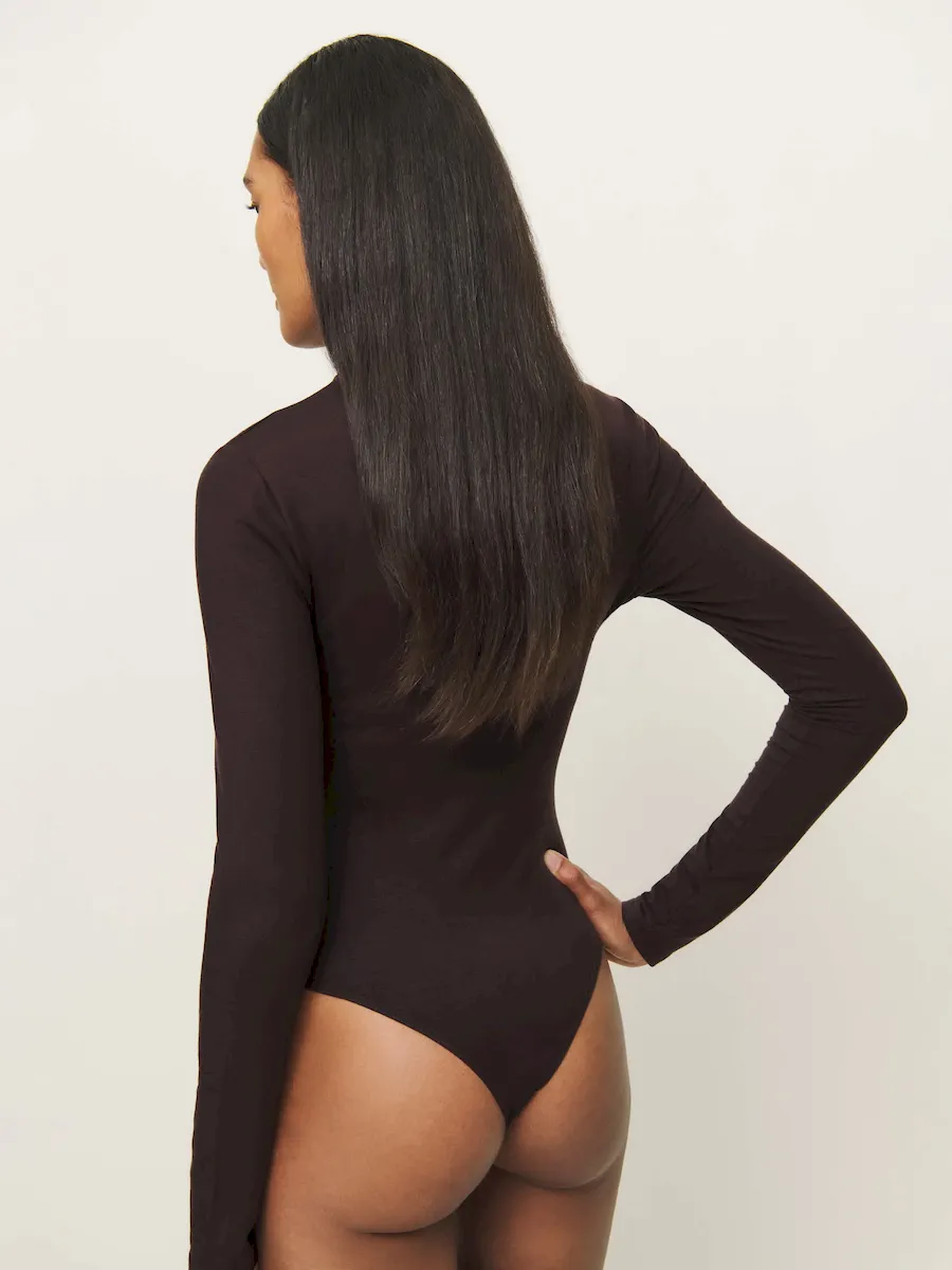 The model is wearing a size XS and is 5’11”, 24″ waist, 34″ hips, 32″ bust.