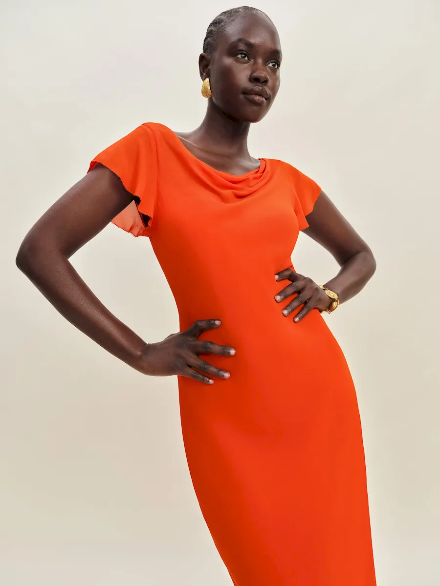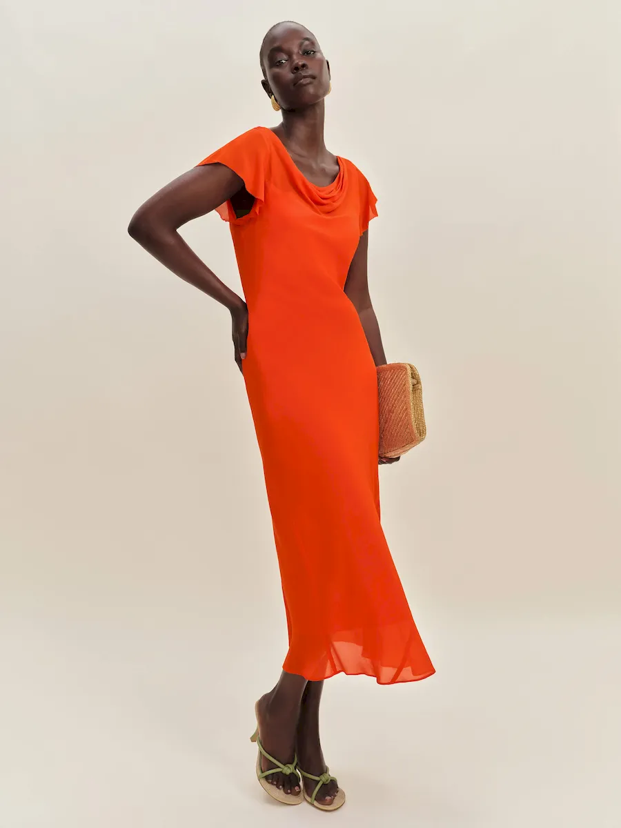 This is a lightweight georgette fabric with a dry handfeel, made from 100% Viscose. Viscose is a man-made cellulosic fiber made from wood pulp.