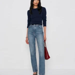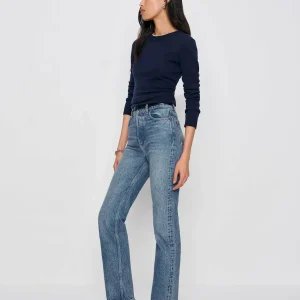 The model is wearing a size 25 and has a 24.5″ waist, 34.5″ hips.