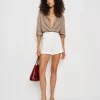 The model is wearing a size 25 and has a 24.5″ waist, 34.5″ hips.