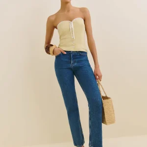 The model is wearing a size 0 and is 5’10”, 23″ waist, 35.5″ hips, 32.5″ bust.