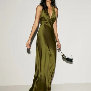 The model is wearing a size 0 and is 5’10”, 24.5″ waist, 34.5″ hips, 31″ bust.