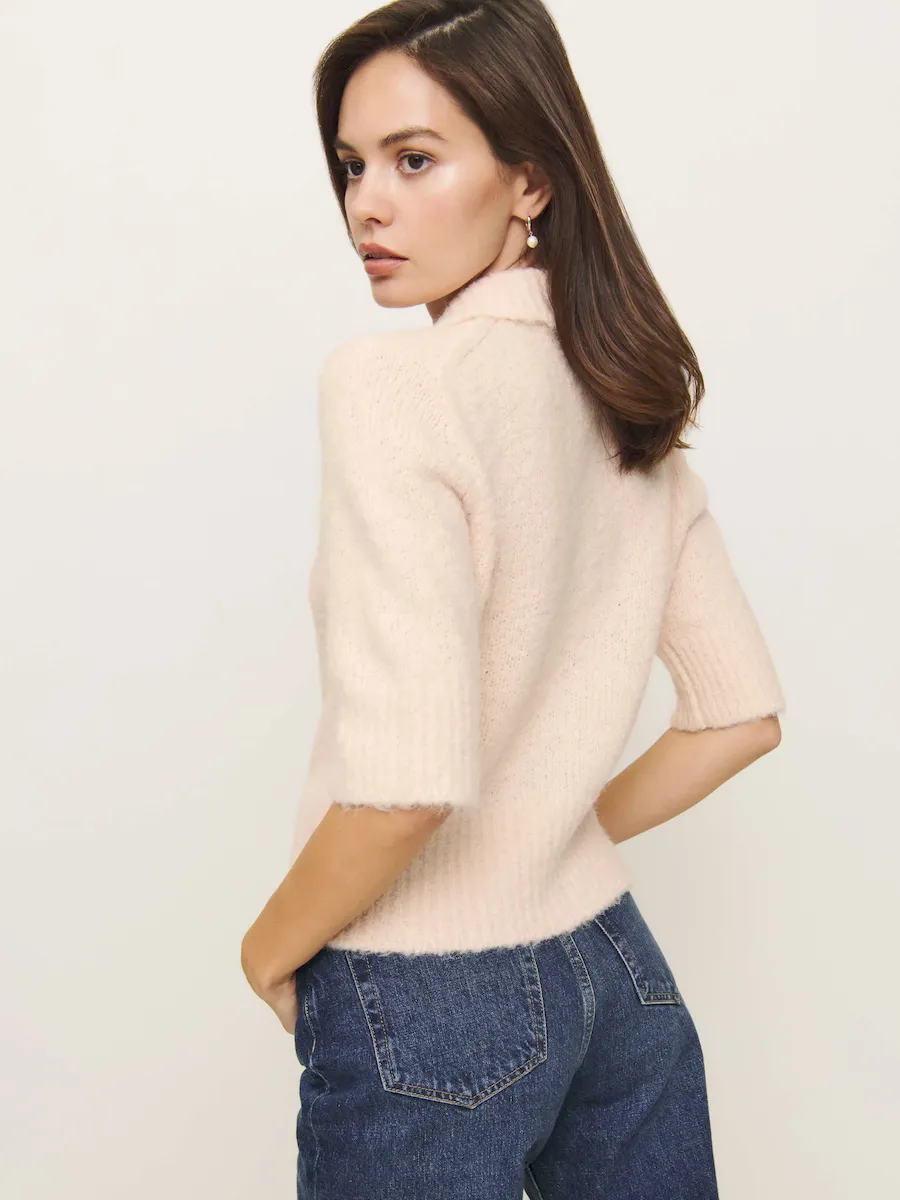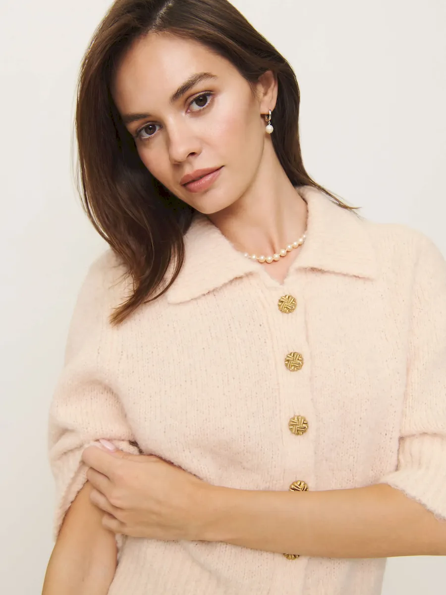 This is a soft, slubby alpaca sweater yarn spun in Italy, made from 56% Baby Suri Alpaca, 32% RWS Merino Wool, 8% GRS Recycled Nylon, 4% Nylon. Hand wash + dry flat. More onfabric & care.