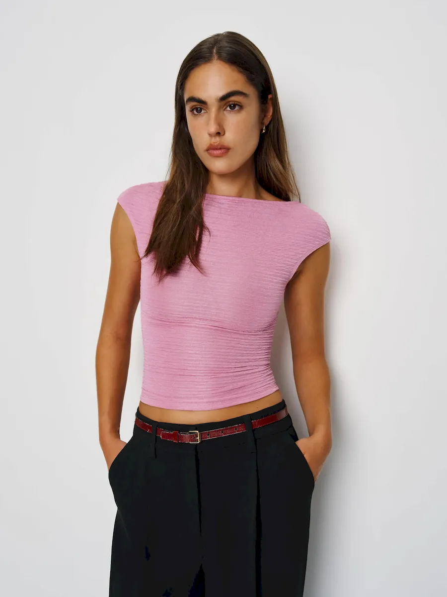 The model is wearing a size S and is 5’9.5″, 25″ waist, 36″ hips, 34″ bust.
