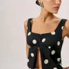 The model is wearing a size XS and is 5’9″, 24″ waist, 34″ hips, 32″ bust.
