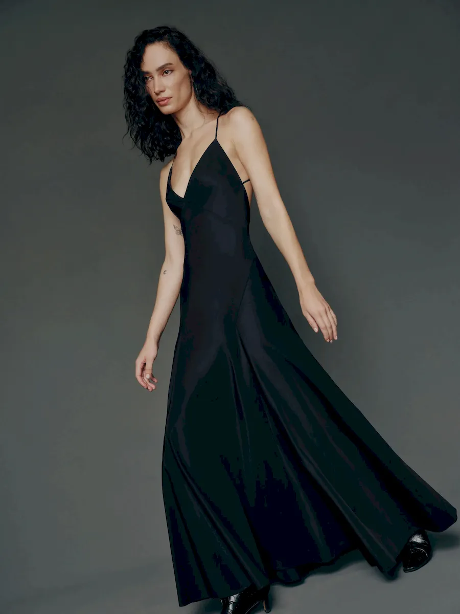 The model is wearing a size 0 and is 5’9″, 24.5″ waist, 35″ hips, 32″ bust.