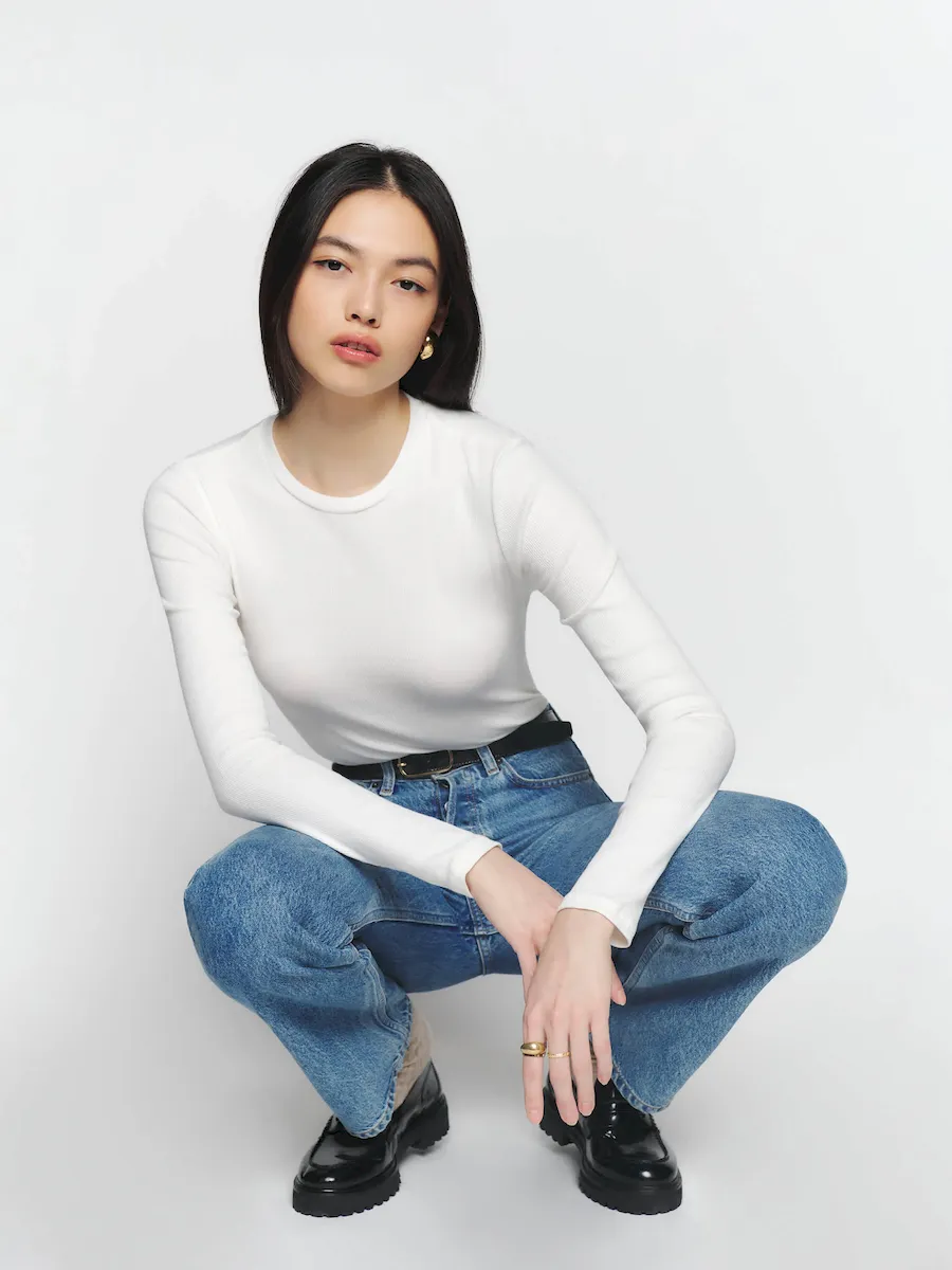 This is a 2×1 medium weight rib knit fabric with moderate stretch made from 97% Organically Grown Cotton and 3% Spandex. Wash cold / tumble dry low. More onfabric & care.