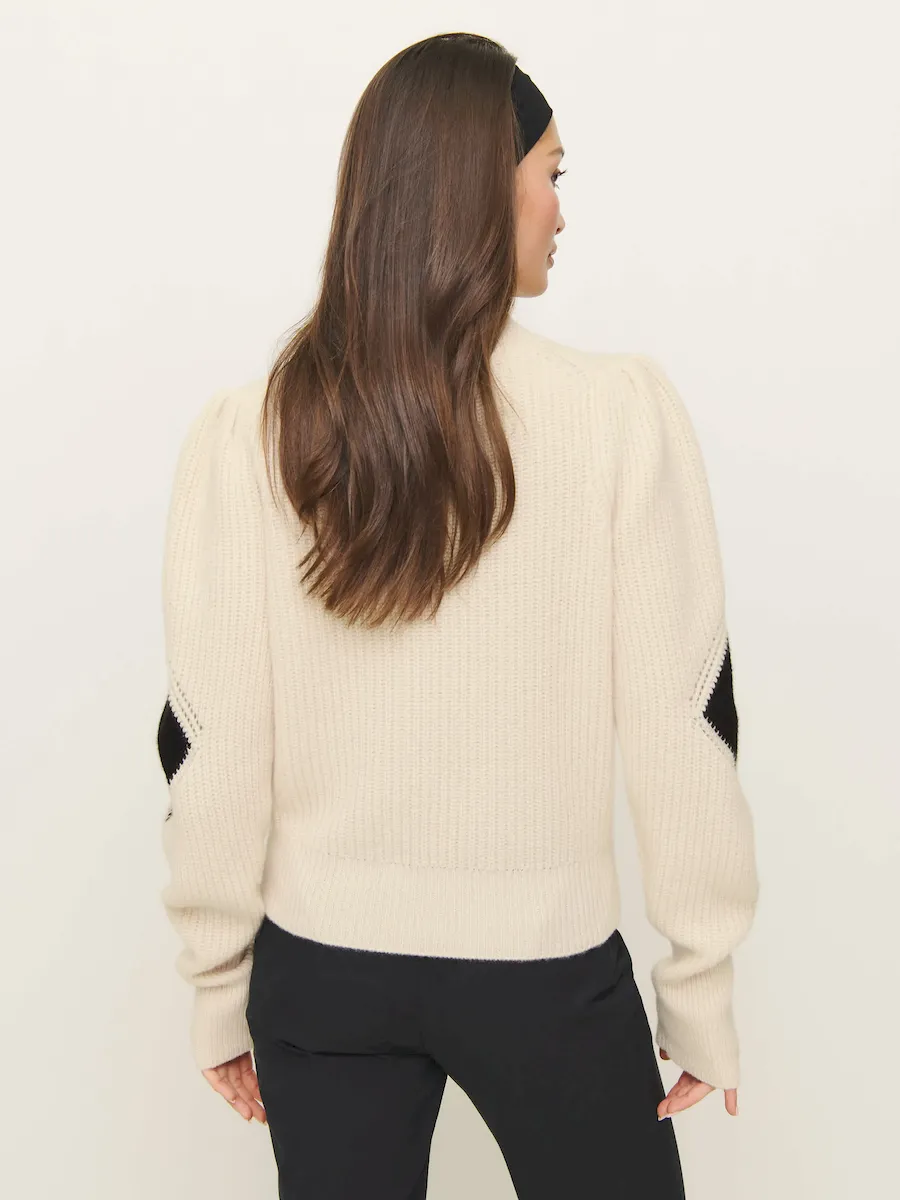 This is a fine-gauge recycled cashmere blend sweater knit – 95% Recycled Cashmere, 5% Cashmere. Hand wash + dry flat. More onfabric & care.