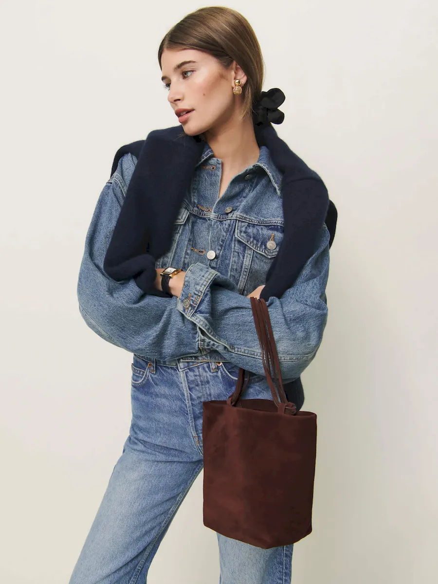 Heavy weight premium calf suede. Spot clean. More onfabric & care.