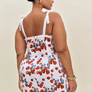 The model is wearing a size 14 and is 5’8″, 33″ waist, 50″ hips, 42″ bust.
