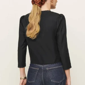 The model is wearing a size XS and is 5’9″, 24″ waist, 34.5″ hips, 33″ bust.