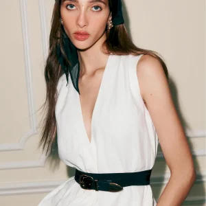 The model is wearing a size 2 and is 5’10”, 23″ waist, 34″ hips, 31″ bust.