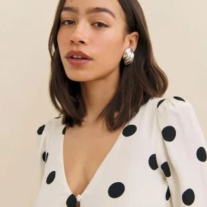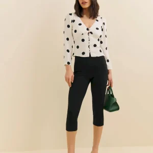 The model is wearing a size 2 and is 5’9″, 25″ waist, 36.5″ hips, 34″ bust.