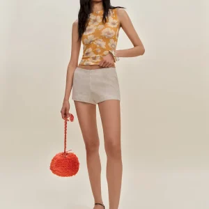The model is wearing a size XS and is 5’10”, 24.5″ waist, 34.5″ hips, 31″ bust.