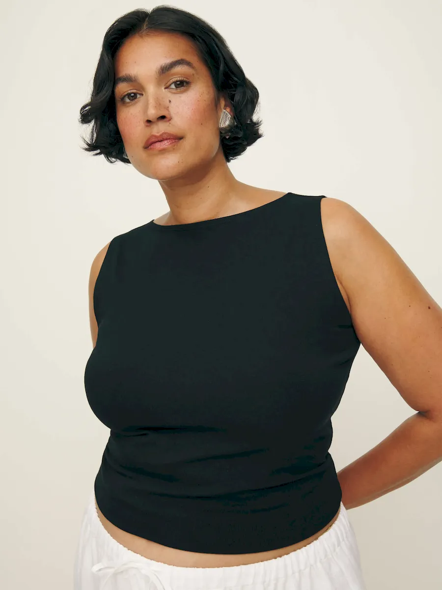 The model is wearing a size 1X and is 5’9.5″, 29″ waist, 43.5″ hips, 39.5″ bust.