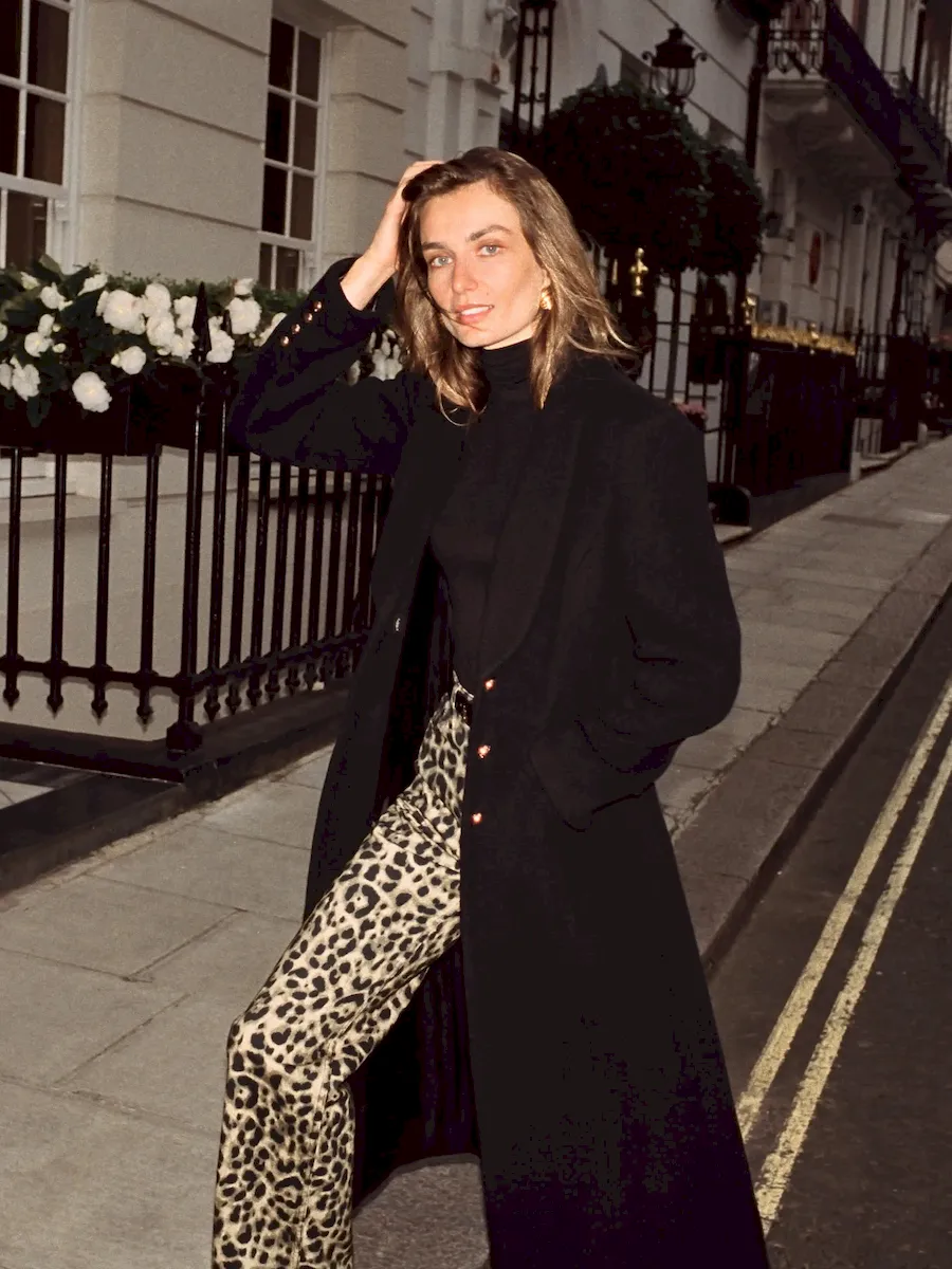 The model is wearing a size XS and is 5’11”, 24″ waist, 35″ hips, 32.5″ bust.