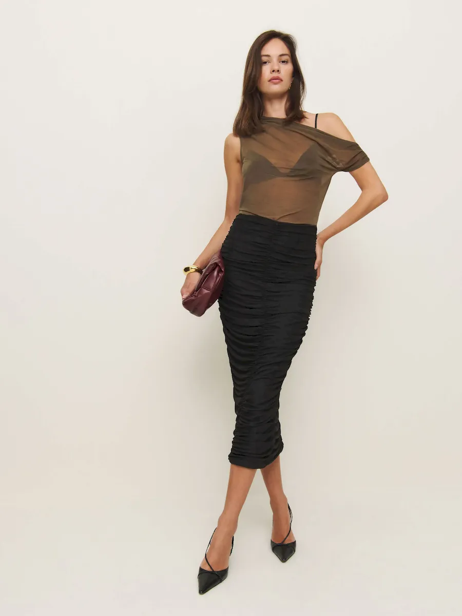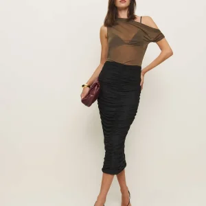 The model is wearing a size XS and has a 24″ waist, 34″ hips.