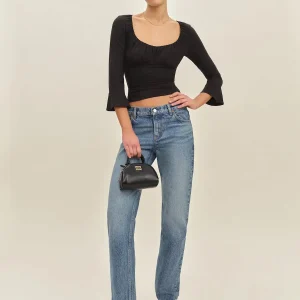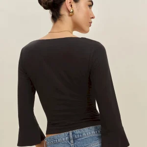 The model is wearing a size XS and is 5′ 9.5″, 24″ waist, 34.5″ hips, 34″ bust.
