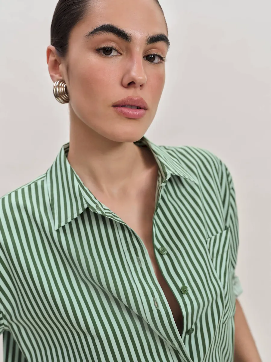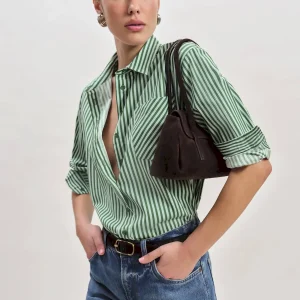 The model is wearing a size XS and is 5′ 9.5″, 24″ waist, 34.5″ hips, 34″ bust.