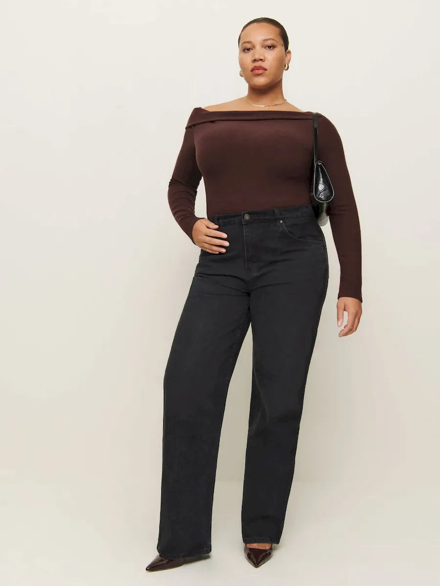 The model is wearing a size 1X and is 5’9″, 34″ waist, 45″ hips, 41.5″ bust.