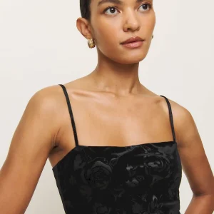 adjustable straps, straight neckline.