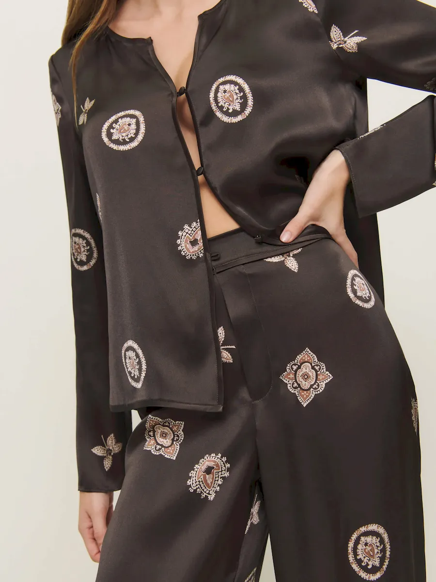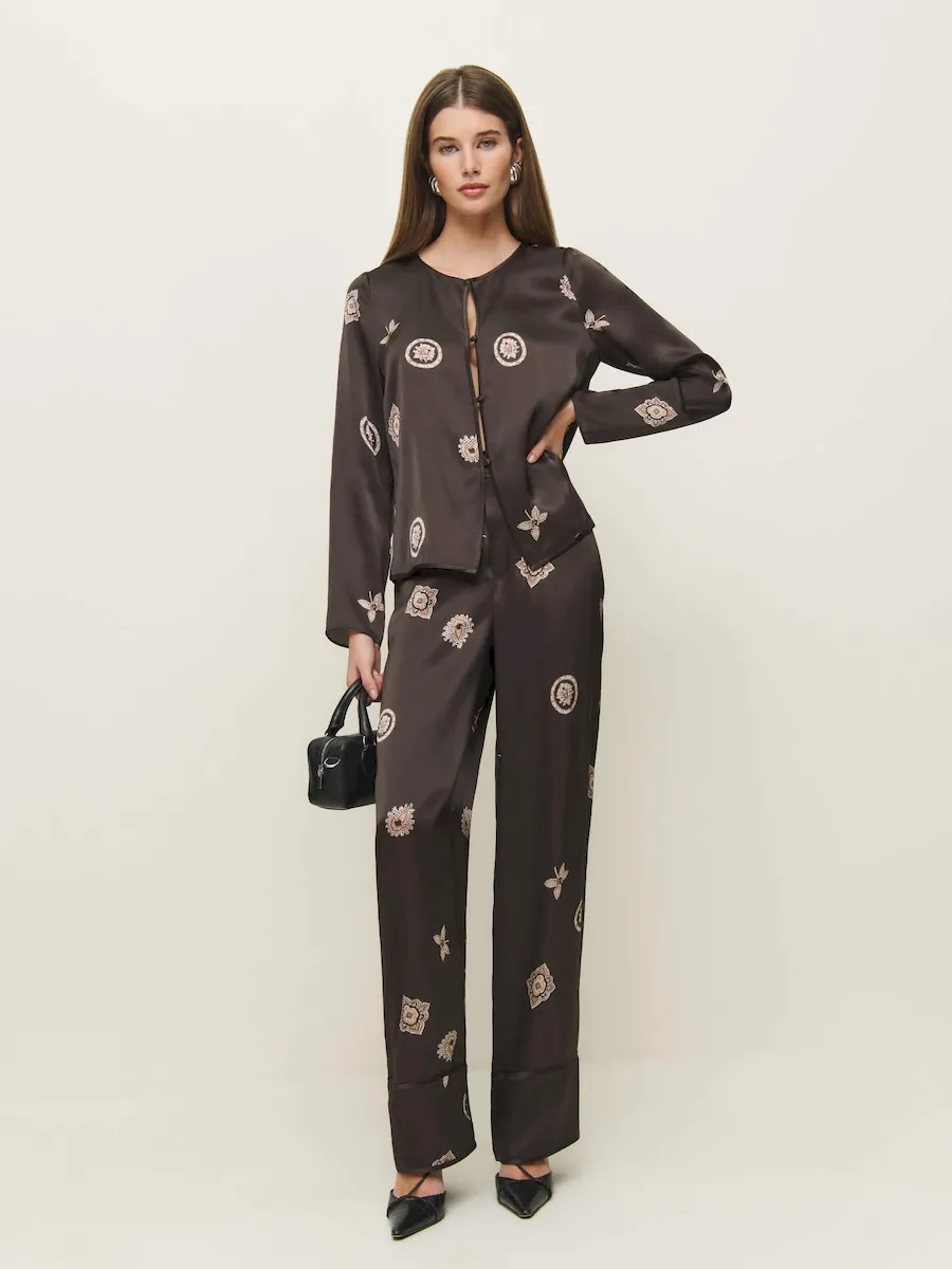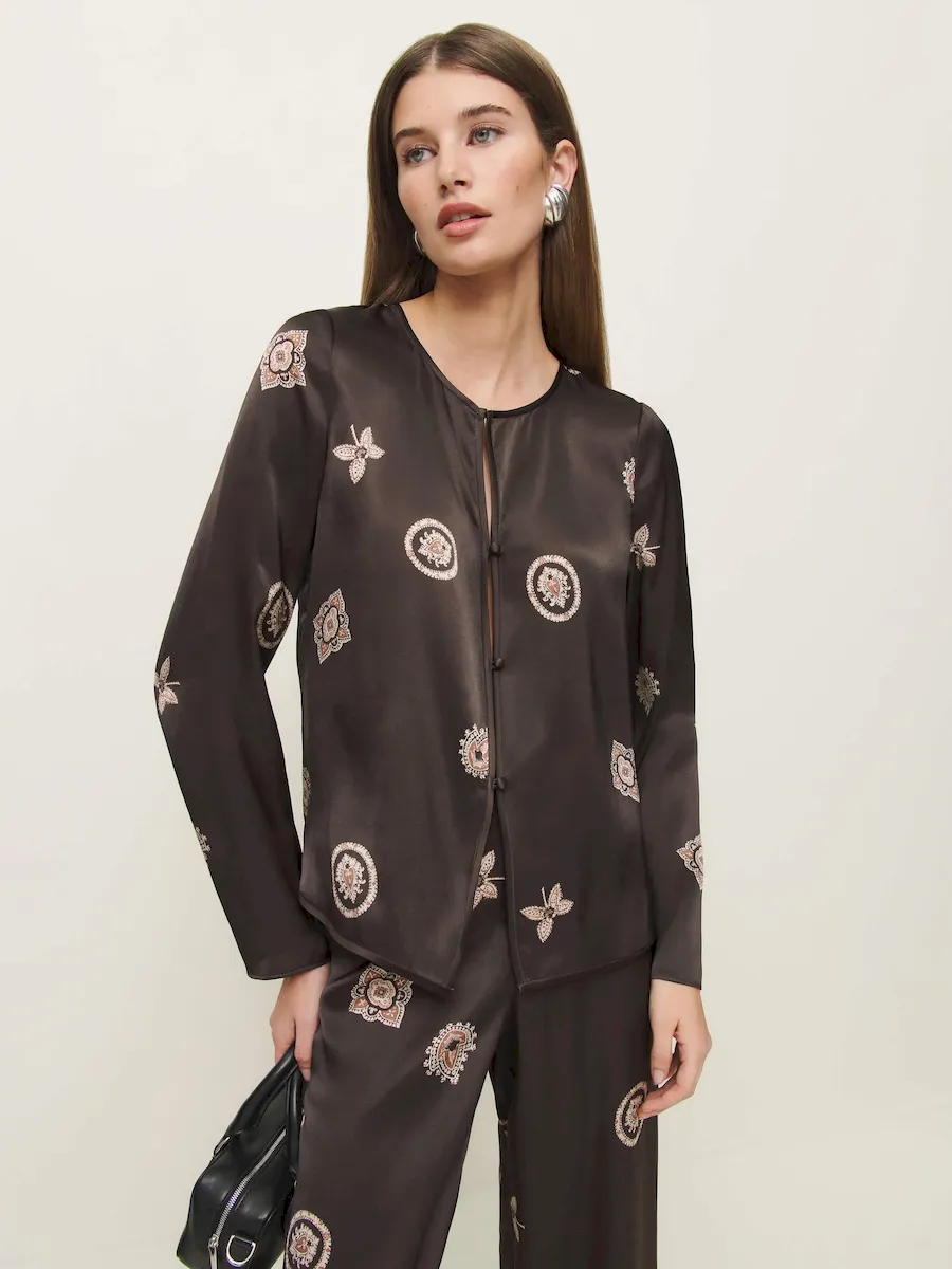 This is a lightweight silk charmeuse fabric – 100% silk. Dry clean only. More onfabric & care.