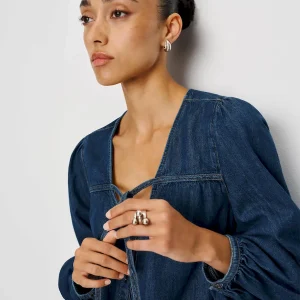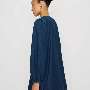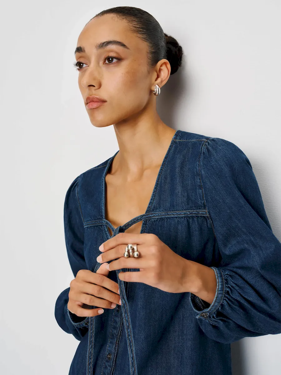 This fabric is a non-stretch denim twill made of 100% Organically Grown Cotton. Wash cold + line dry. More onfabric & care.
