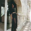 The model is wearing a size XS and is 5’10”, 25″ waist, 36″ hips, 34″ bust.