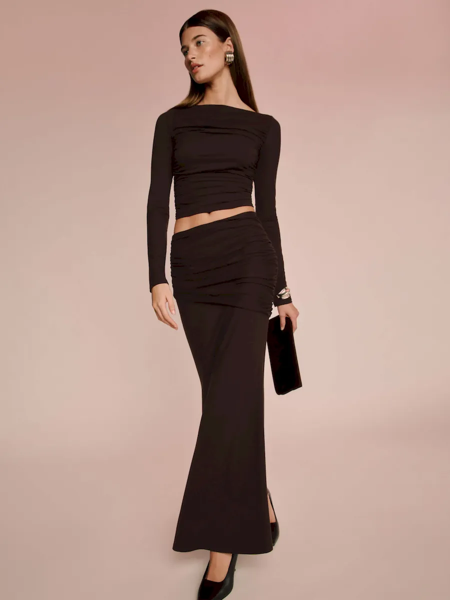 Designed to be fitted at bodice with a column skirt.See our size & fit guide.