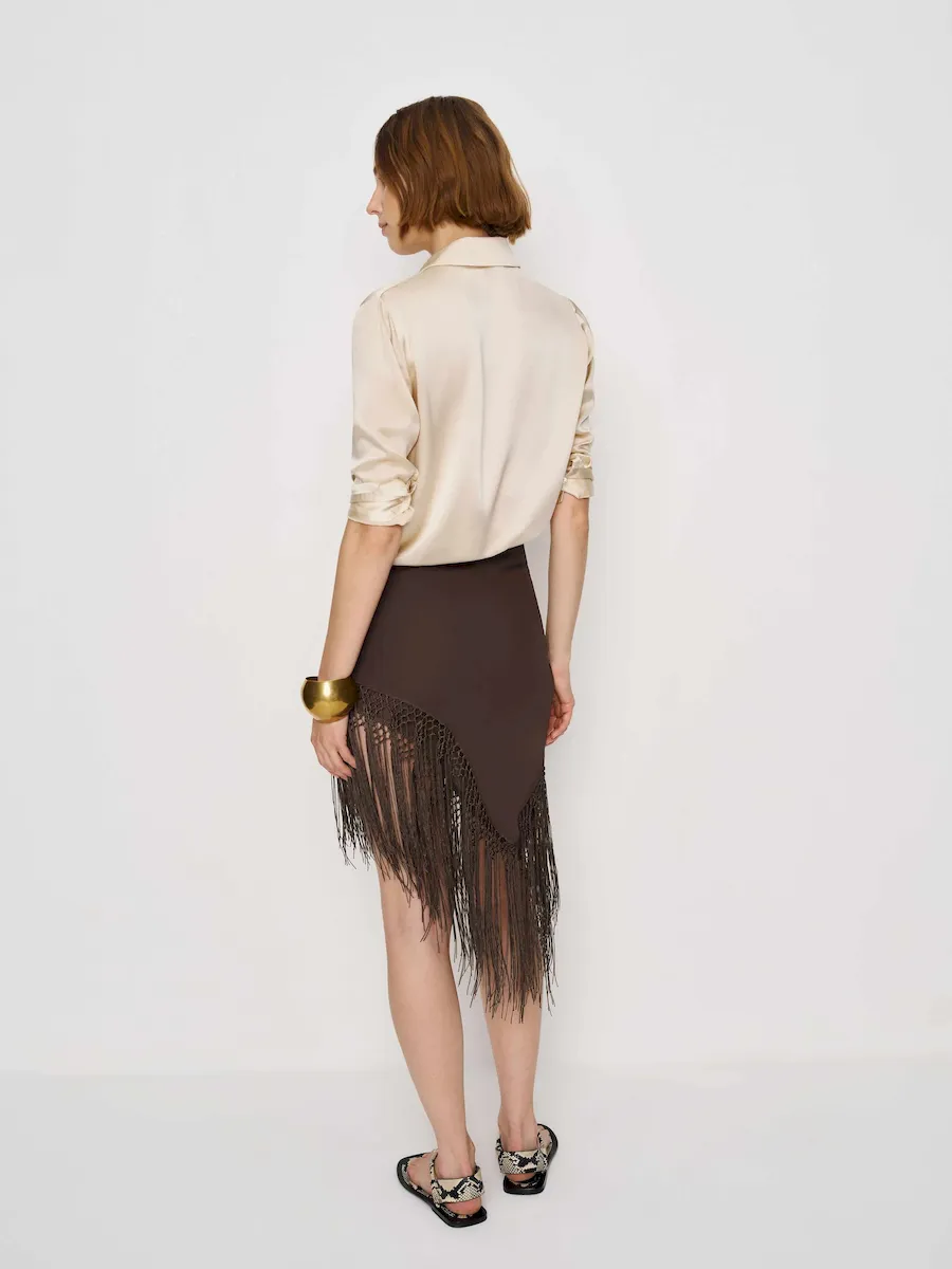 This is a lightweight georgette fabric with a dry handfeel, made from 100% Viscose. Viscose is a man-made cellulosic fiber made from wood pulp. Dry clean only. More onfabric & care.