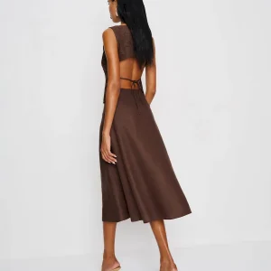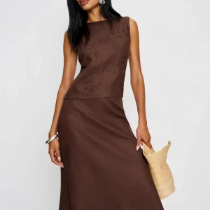 The model is wearing a size 0 and is 5’9″, 24″ waist, 34″ hips, 30″ bust.