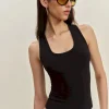 The model is wearing a size 0 and is 5’8″, 23″ waist, 35.5″ hips, 30″ bust.