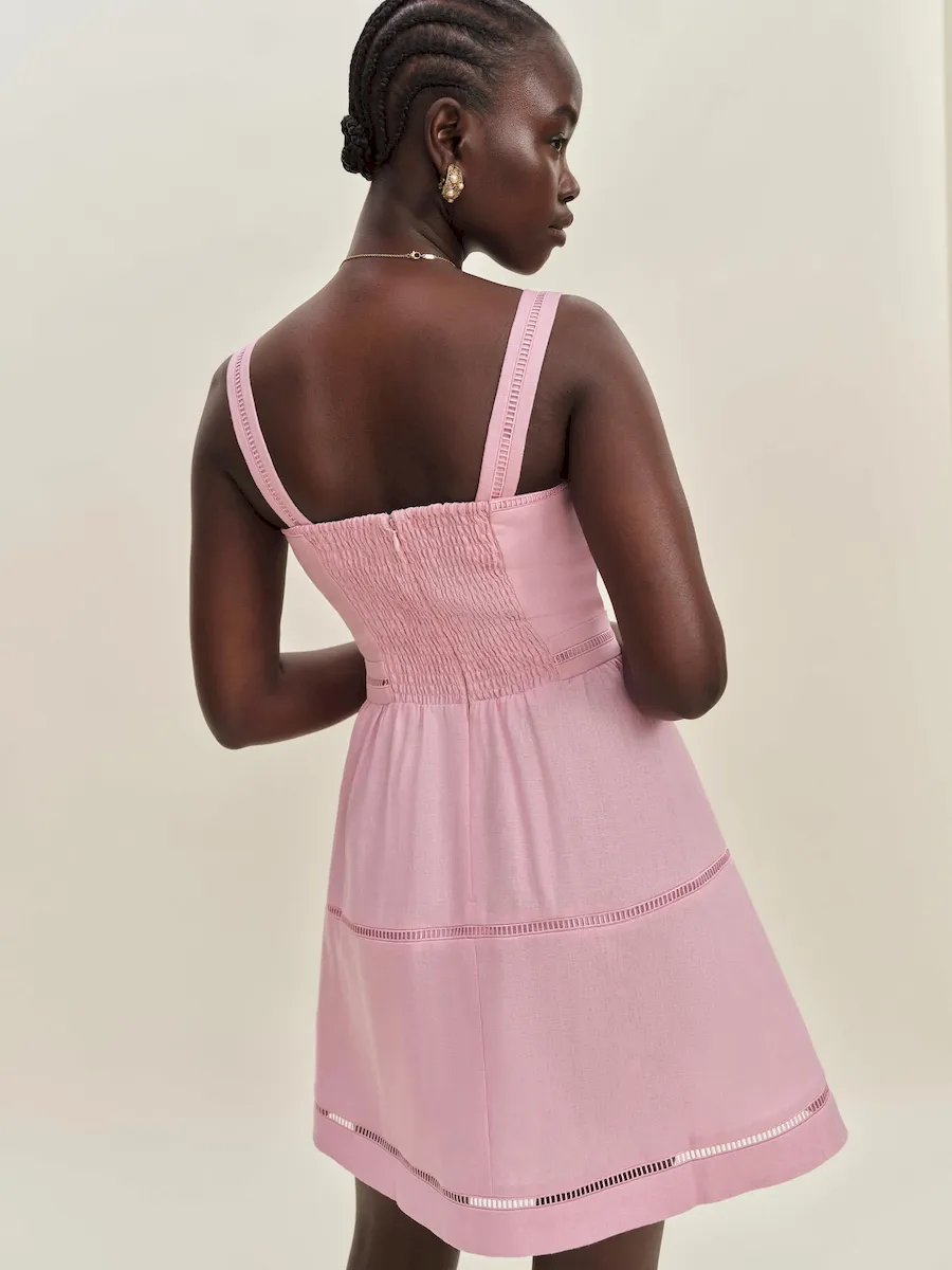 back smocking, straight neckline.
