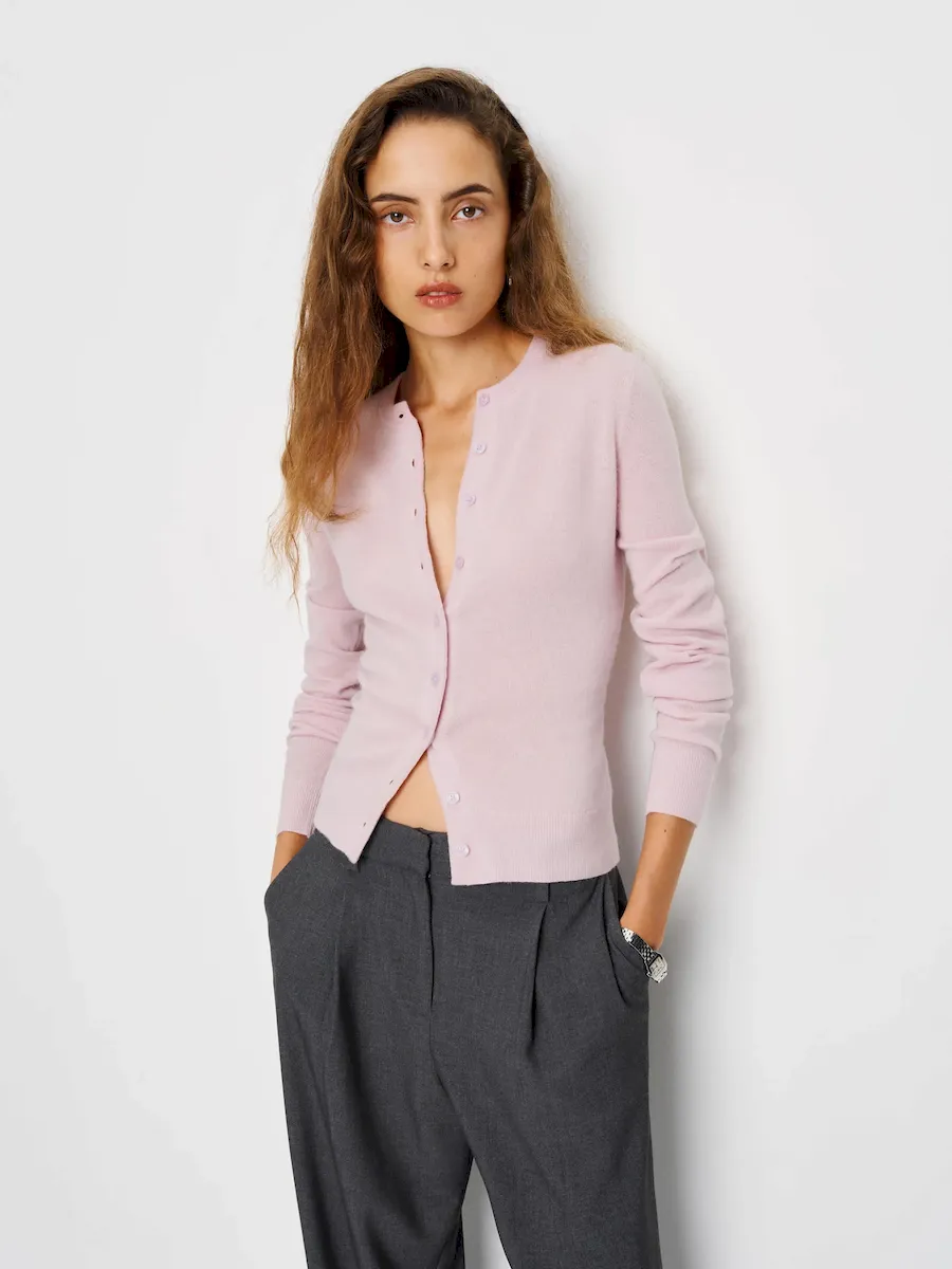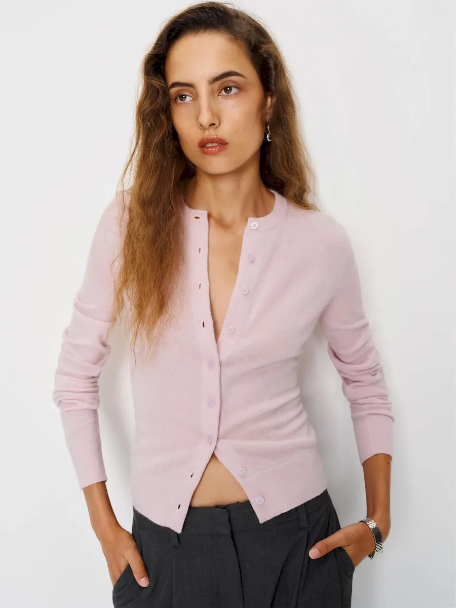 This is a fine-gauge recycled cashmere blend sweater knit – 95% Recycled Cashmere, 5% Cashmere. Hand wash + dry flat. More onfabric & care.