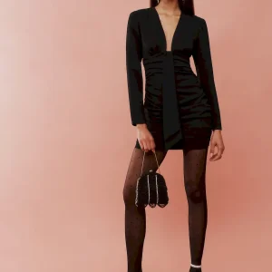 The model is wearing a size 0 and is 5’10”, 23″ waist, 35.5″ hips, 32.5″ bust.