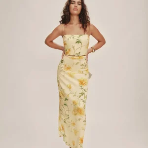 The model is wearing a size 2 and is 5’9.5″, 25″ waist, 36″ hips, 34″ bust.