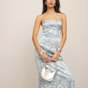 The model is wearing a size 0 and is 5’9″, 24″ waist, 34″ hips, 32″ bust.