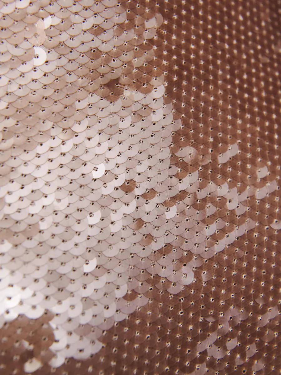 This is a deadstock fabric made from 100% Polyester. Dry clean only. More onfabric & care.